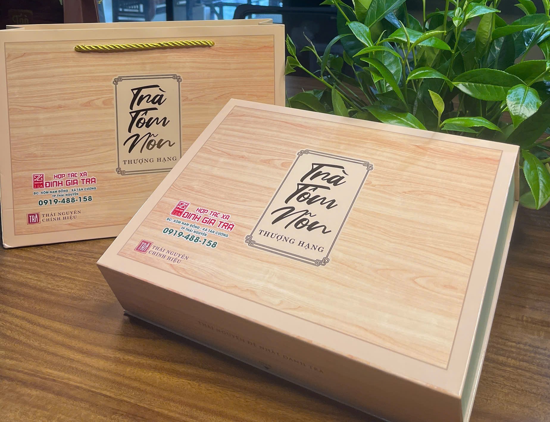 Các thương hiệu trà chất lượng cao hiện nay – trong đó có Đinh Gia Trà – thường lựa chọn phong cách thiết kế tối giản, tinh tế với tone màu gỗ nhẹ, chất liệu cứng cáp và họa tiết mang hơi thở truyền thống Việt. Sự trang nhã ấy khiến người nhận có cảm giác được trân trọng ngay từ giây phút chạm tay vào món quà.