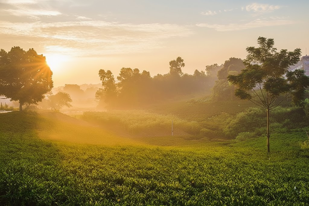 Tân Cương sở hữu khí hậu hiếm có: sáng mát lạnh từ dãy Tam Đảo, trưa ấm vừa đủ, chiều đổ nắng vàng nhẹ. Ba nhịp nắng ấy tạo thành một chu trình ổn định cho cây chè phát triển và tổng hợp dưỡng chất.