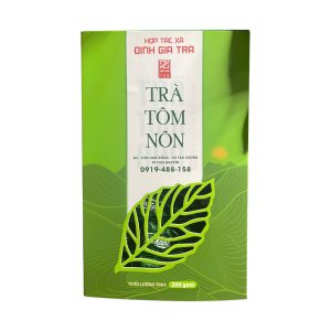 Thành phần: Nguyên liệu là búp chè nõn tươi 1 tôm 1 lá tại vùng chè đạt tiêu chuẩn của Hợp Tác Xã Đinh Gia Trà được hái vào buổi sáng sớm, chè sau đó đem về ngay và được sao khô luôn sử dụng công nghệ hiện đại đảm bảo quy trình KHÉP KÍN, đã giữ được chất, vị, hương Chè Tân Cương tự nhiên, sau khi sao khô chế biến thành Chè Tôm nõn được đóng gói bằng túi ẩm nhỏ hút chân không đế tiện lợi khi sử dụng và bảo quản chè được tốt và lâu hơn..
