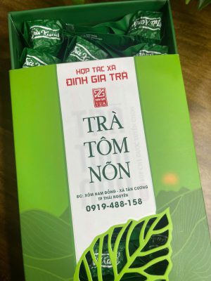 Thành phần: Nguyên liệu là búp chè nõn tươi 1 tôm 1 lá tại vùng chè đạt tiêu chuẩn của Hợp Tác Xã Đinh Gia Trà được hái vào buổi sáng sớm, chè sau đó đem về ngay và được sao khô luôn sử dụng công nghệ hiện đại đảm bảo quy trình KHÉP KÍN, đã giữ được chất, vị, hương Chè Tân Cương tự nhiên, sau khi sao khô chế biến thành Chè Tôm nõn được đóng gói bằng túi ẩm nhỏ hút chân không đế tiện lợi khi sử dụng và bảo quản chè được tốt và lâu hơn..